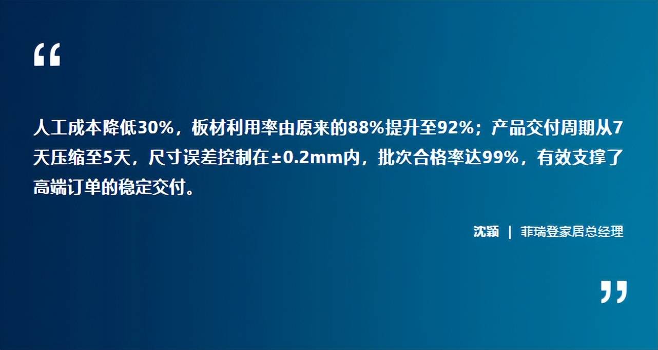 面临行业新趋向,菲瑞登订定了明白的异日繁荣远景:菲瑞登将进一步升级绿色智制编制,正在降本增效的同时践行可一连繁荣,坚韧“轻高定”赛道的身手与口碑上风。